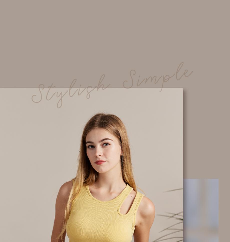 ADK40 羅紋水滴領設計修身美型 BRA TOP (L, 黃)