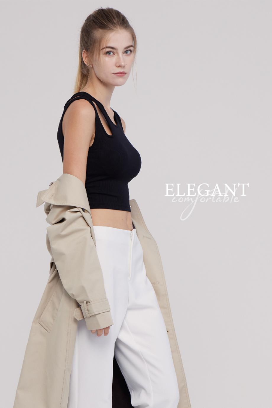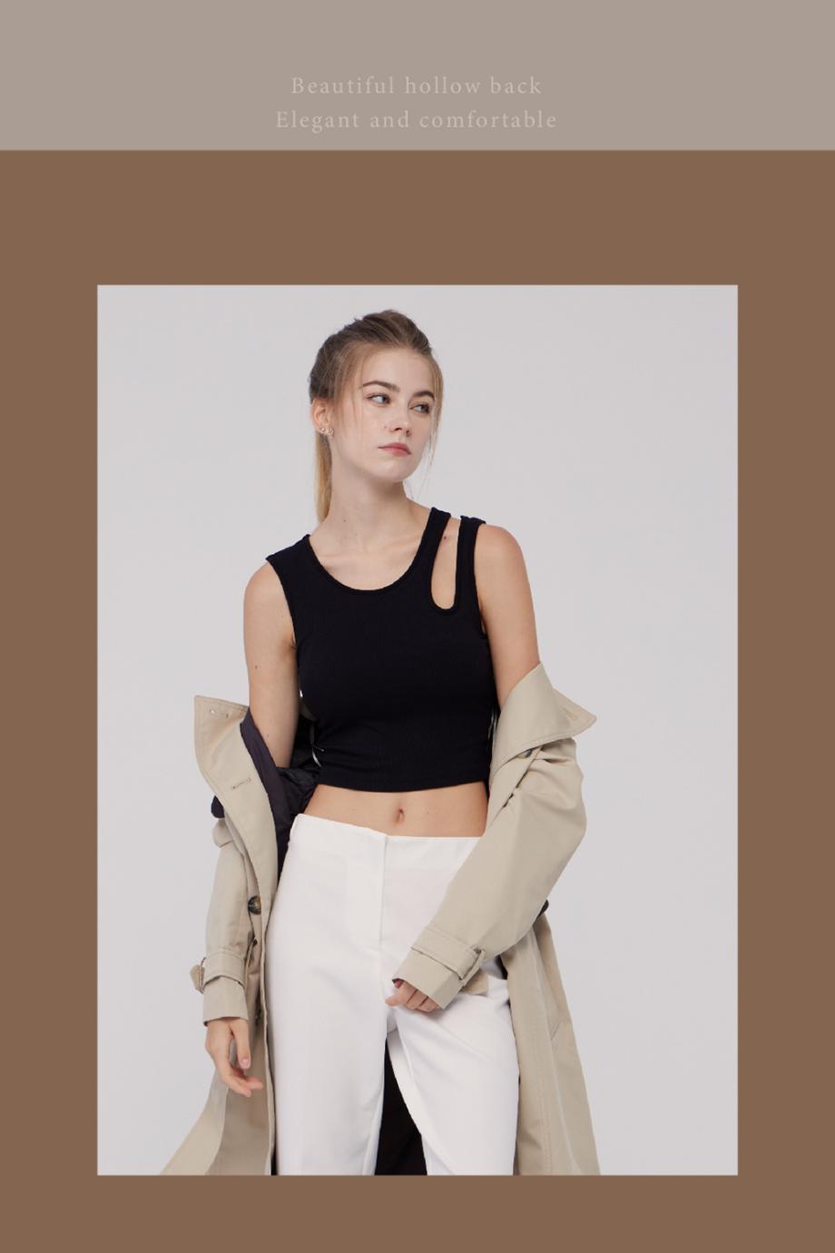 ADK40 羅紋水滴領設計修身美型 BRA TOP