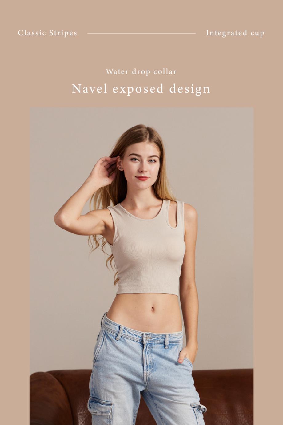 ADK40 羅紋水滴領設計修身美型 BRA TOP (M, 杏色)