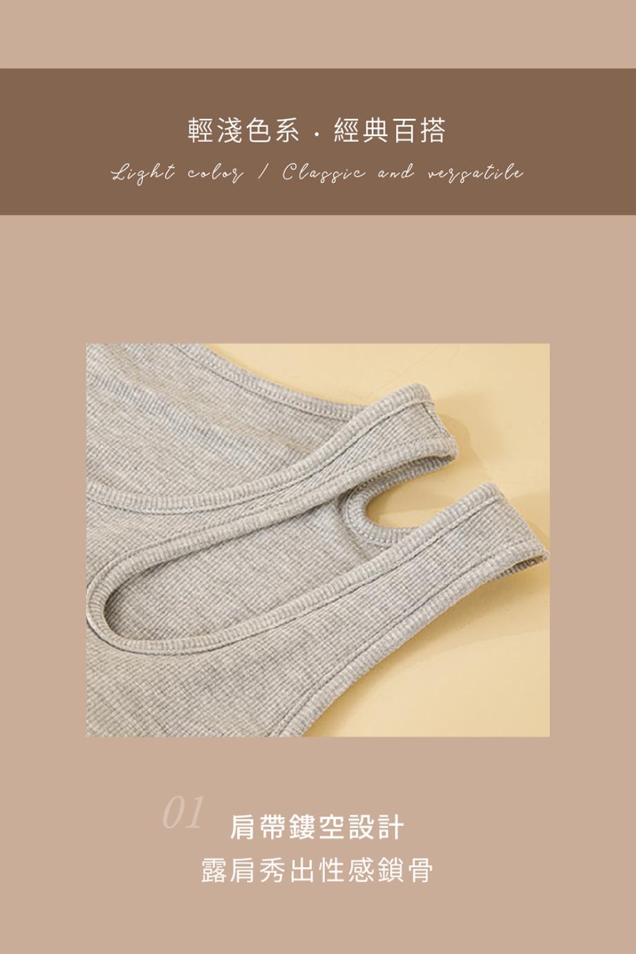 ADK40 羅紋水滴領設計修身美型 BRA TOP (S, 麻灰)