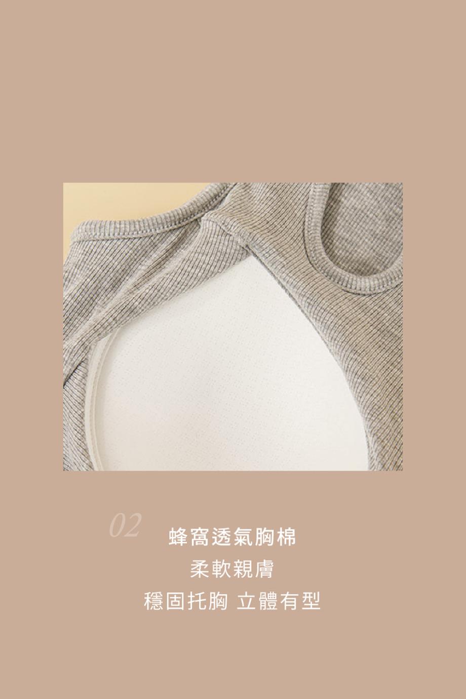 ADK40 羅紋水滴領設計修身美型 BRA TOP (L, 麻灰)